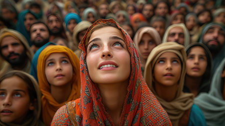 A group of people with different skin tones and head coverings