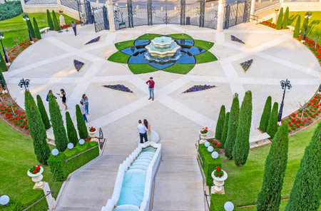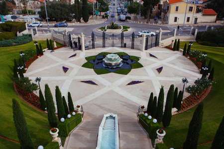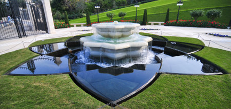 HAIFA, ISRAEL - MARCH 09, 2015: Fountain on the lower tier of the Bahai Gardens in Haifa, Israel