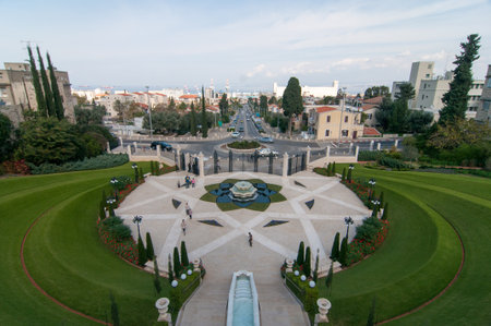 HAIFA, ISRAEL - JANUARY 22, 2016: Lower tier of the Bahai Gardens in Haifa, Israel
