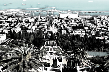 View of Haifa from the Bahai garden drawing filter