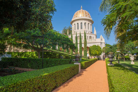 Beautiful view of Temple in Bahai Garden in Haifa, Israel.