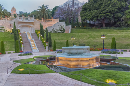 Bahai Gardens in Haifa, Israel. Morning Sunrise. Tourist Attraction.
