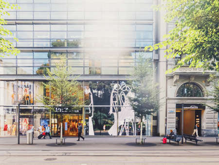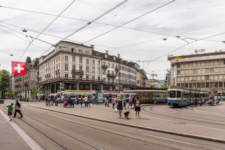 Zurich, Switzerland - June 03, 2017: People on the street in Zurich. Daily life in Zurich.