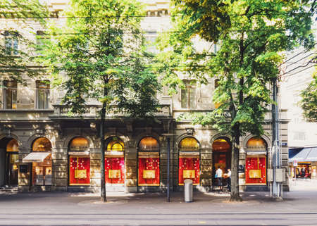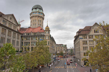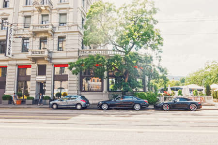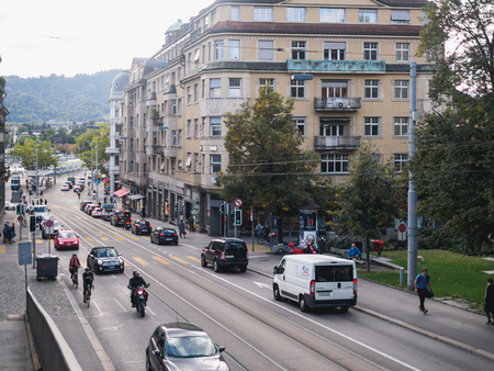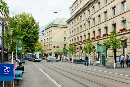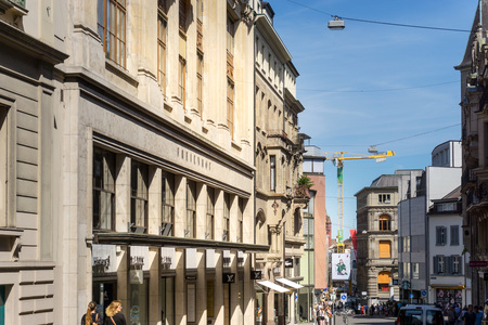 ZURICH, SWITZERLAND - JUL 21 2014: Street view in Zurich, Switzerland. Zurich is the largest city in Switzerland.