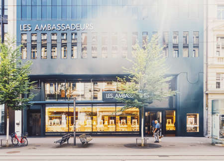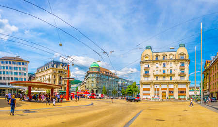 GENEVA, SWITZERLAND, JULY 20, 2017: View of a central street in the swiss city Geneva, Switzerland