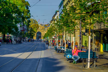 Bern city. It is a popular shopping street and medieval city centre of Bern, Switzerland