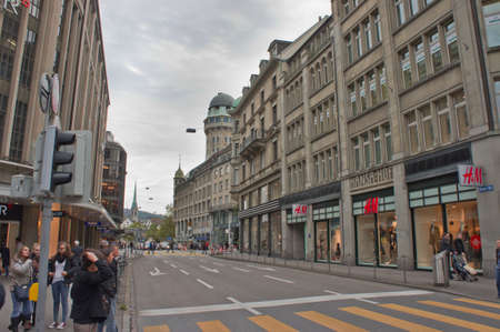 Zurich, Switzerland circa September, 2019: Bahnhofstrasse in Zurich, Switzerland, main downtown street in the city center