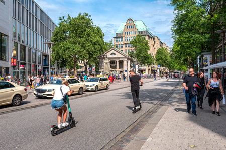 city and shopping streets around October 25, 2018 Dusseldorf, Germany. The theme of shopping in Europe. Central street with shops in Dusseldorf.
