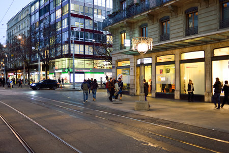 bahnhofstrasse in zurich, switzerland. one of the most famous shopping streets in europe
