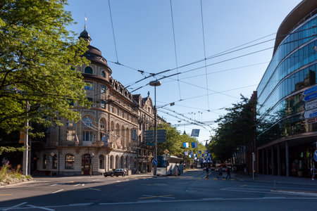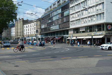 Zurich, Switzerland - July 13th 2019: Traffic situation at an urban square