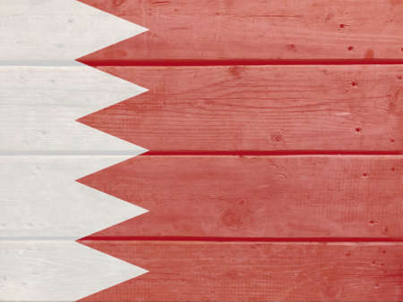 Bahrain flag painted on wood plank background. Brushed natural light knotted wooden board texture. Wooden texture background flag of Bahrain