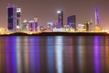 MANAMA, BAHRAIN - NOV 17: Skyline of Manama City illuminated at night, Bahrain. November 17, 2015 in Manama, Kingdom of Bahrain, Middle East