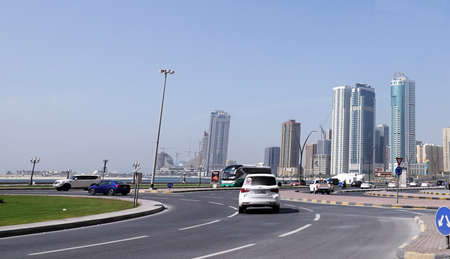 Doha, Qatar - December 20, 2018: city street, modern architecture