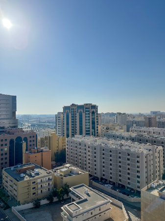 Doha,Qatar- May 15,2022 :View Doha of Skyline in the morning from Qatar grand mosque.