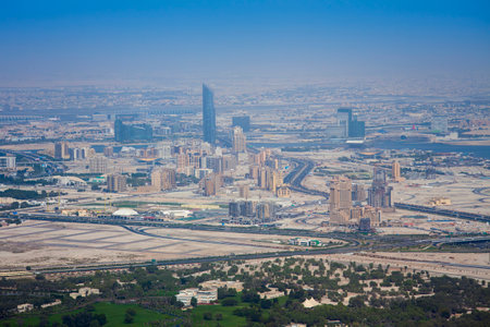 Dubai, United Arab Emirates - June 10, 2021: Aerial View to the Traffic Road and Building in the city
