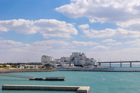 Doha, Qatar - October 2021: The entrance to the Museum of Islamic Art on the Doha Corniche.