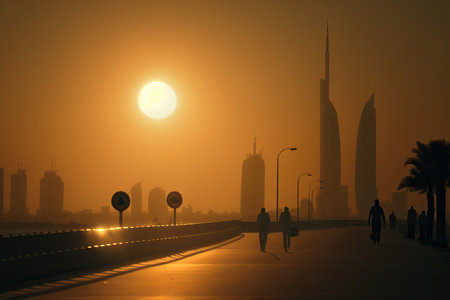 Cinematic scene of Dubai Cityscape. Illustration digital art background. Ai generated art