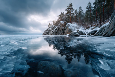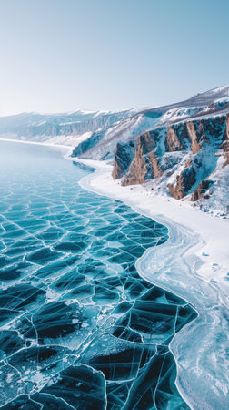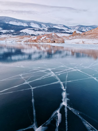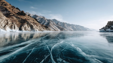 outdoor view of frozen baikal lake in winter