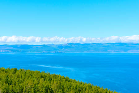 Lake Baikal at sunny summer day. Beauty of nature concept. Soft focus