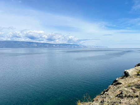 View of the rocky shore of Baikal lake in summer