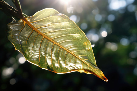 Vibrant leaf vein glows in macro magnification generated by artificial intelligence