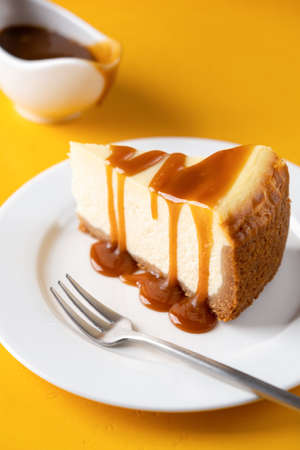Slice of cheesecake with caramel sauce