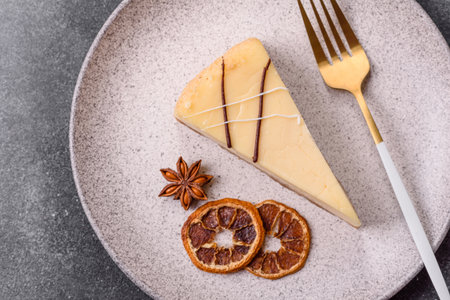 New York cheesecake, a slice of sweet pie, a classic cheesecake dessert. New York cheesecake as a food background for your design