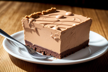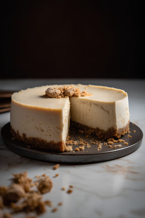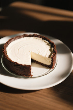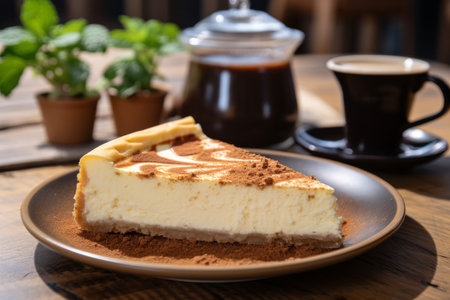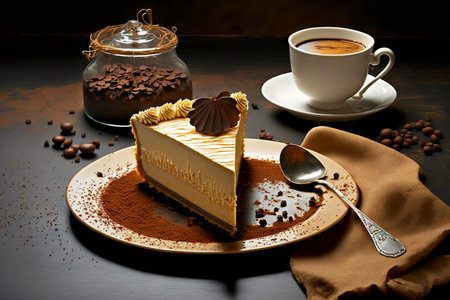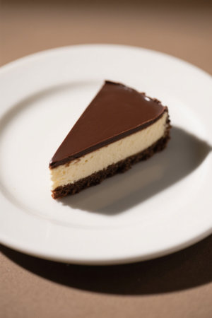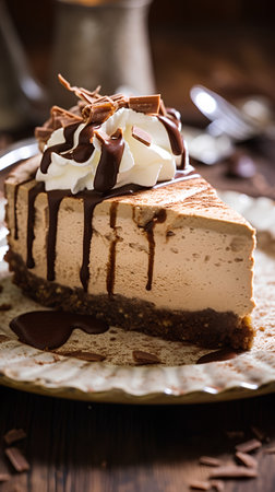 AI Generated. Delicious slice of chocolate cheesecake with crumbly crust
