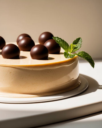 AI Generated. Creamy Dessert with Chocolate Balls and Mint Garnish