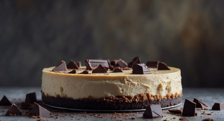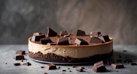 AI Generated. Decadent Chocolate Cheesecake with Dark Chocolate Pieces