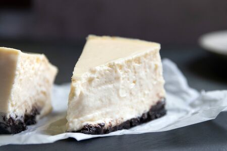 New york cheesecake, freshness piece classic white cream sweet bakery in restaurant, tempting smooth cake for birthday party menu