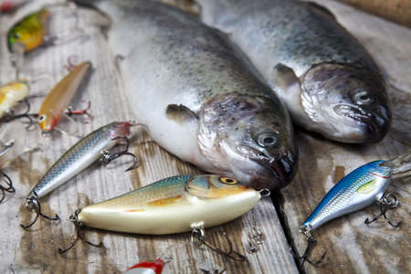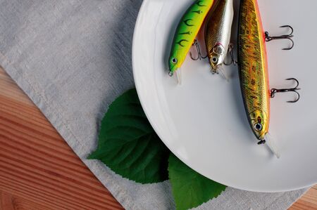 Concept summer fishing for spinning. Gear for catching fish wobblers in the form of fish