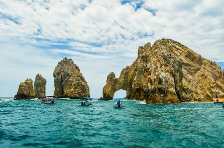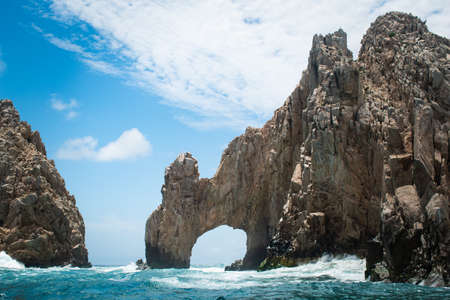The Arch in Los Cabos, Mexico on a sunny day with clouds and blue water
