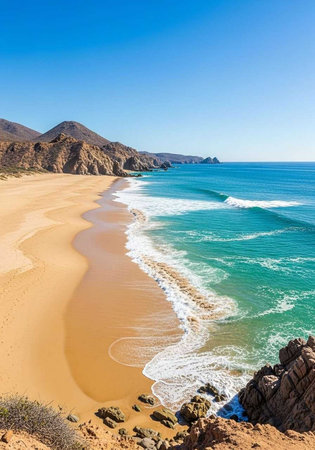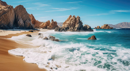 View of Waves at Sandy Beach of Cabo San Lucas in Mexico