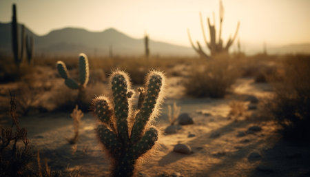 Silhouette of spiked succulent plant at sunset generated by artificial intelligence