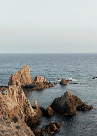 Beautiful panoramic seascape of Cabo de Gata beach in Almeria, Spain
