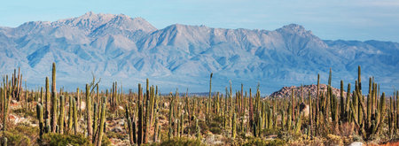 Plethora of cardon and smaller cacti on Baja California peninsula, Mexico