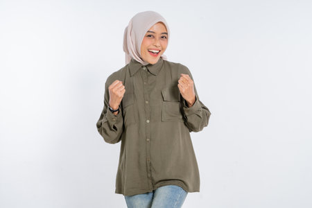 Portrait of a happy young asian muslim woman wearing hijab
