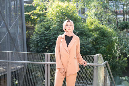 Cyberjaya, Malaysia – 25 December 2019: Fashion portraiture of young beautiful muslim woman wearing hijab.