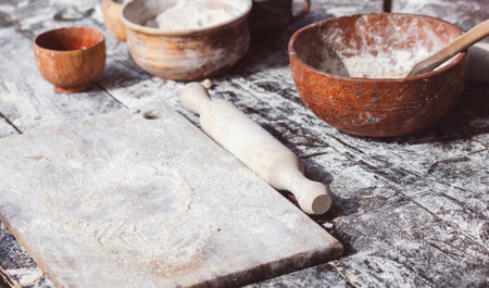 tasty delicious chocolate cookies on wooden table with lot of flour, selective focus