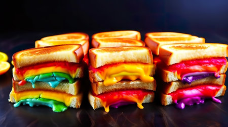 Rainbow grilled cheese sandwiches with melted multicolor cheese, AI generative