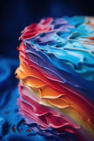 Rainbow cream background. Vibrant whipped cream with multicolored swirls in close-up. Perfect for dessert themes, creative backgrounds and colorful food concepts. Concept sweetness and playful design