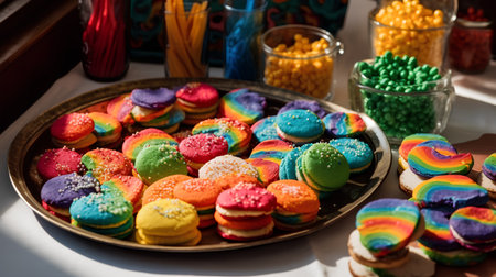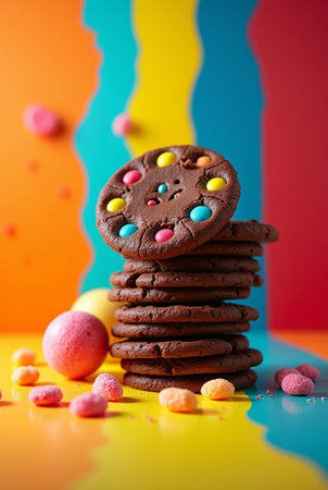 Colorful homemade gourmet snack stack with baked sweet treats generated by artificial intelligence