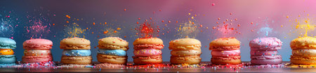 A vibrant stack of macarons in various colors and flavors, showcasing their delicate textures and creamy fillings.