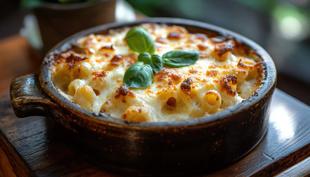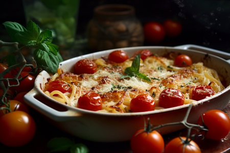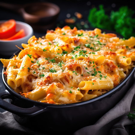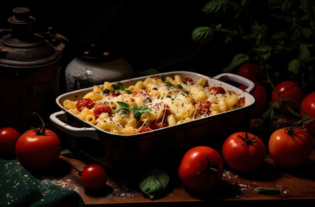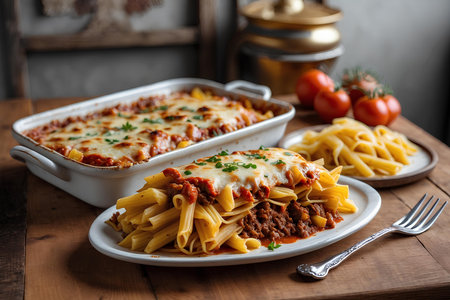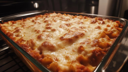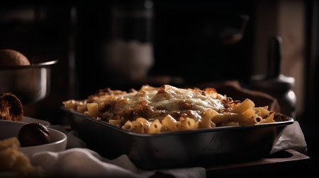 AI Generated. Delicious Baked Pasta Dish in Cozy Atmosphere