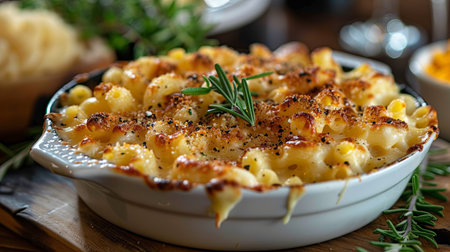 Indulge in this creamy baked macaroni and cheese, featuring a golden cheese topping that melts perfectly. A comforting dish perfect for any meal or occasion.