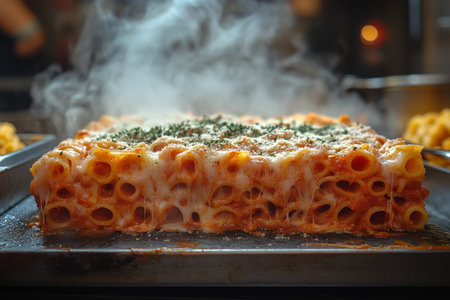 Steaming Hot Lasagna A Delicious Dish of Layered Pasta and Cheese, Fresh from the Oven