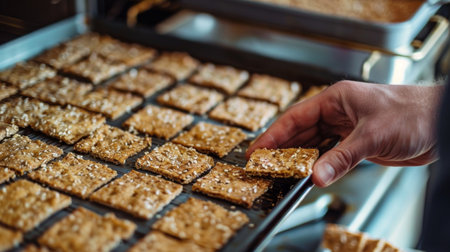 A man handting buckwheat crackers into perfect squares before baking them in the oven