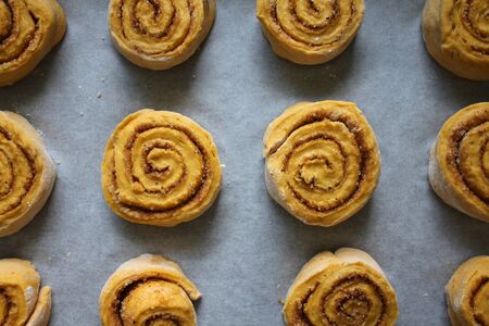 Raw cinnamon pumpkin rolls. Baking yeast dough