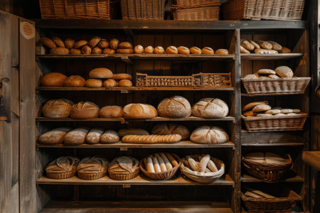 Abundance of fresh bread in rustic bakery generated by artificial intelligence